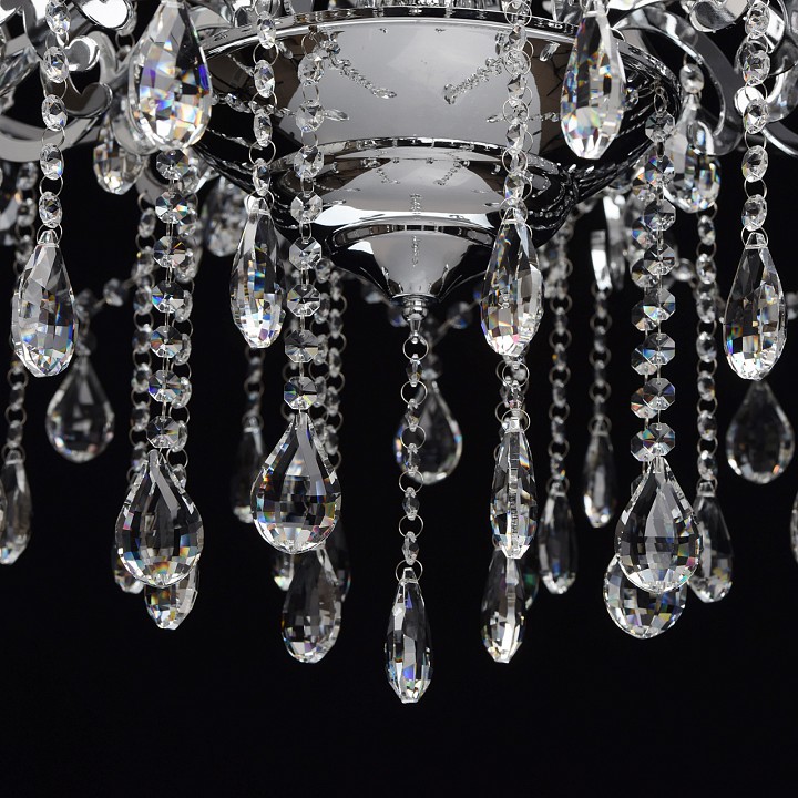 регулируется по высоте Люстра из коллекции Сюзанна ослепляет своим великолепием. Металлическое основание цвета хрома гармонично сочетается с декоративными элементами из хрусталя. Сверкая в лучах света, хрустальные подвески и камни завораживают и приковывают внимание, заставляя наблюдать за заманчивыми отблесками и переливами – комната наполняется волшебным сиянием! В самом сердце композиции – декоративный кристалл из массива хрусталя. Если вы желаете оформить обстановку в стиле ампир, то этот светильник превосходно впишется в интерьер.